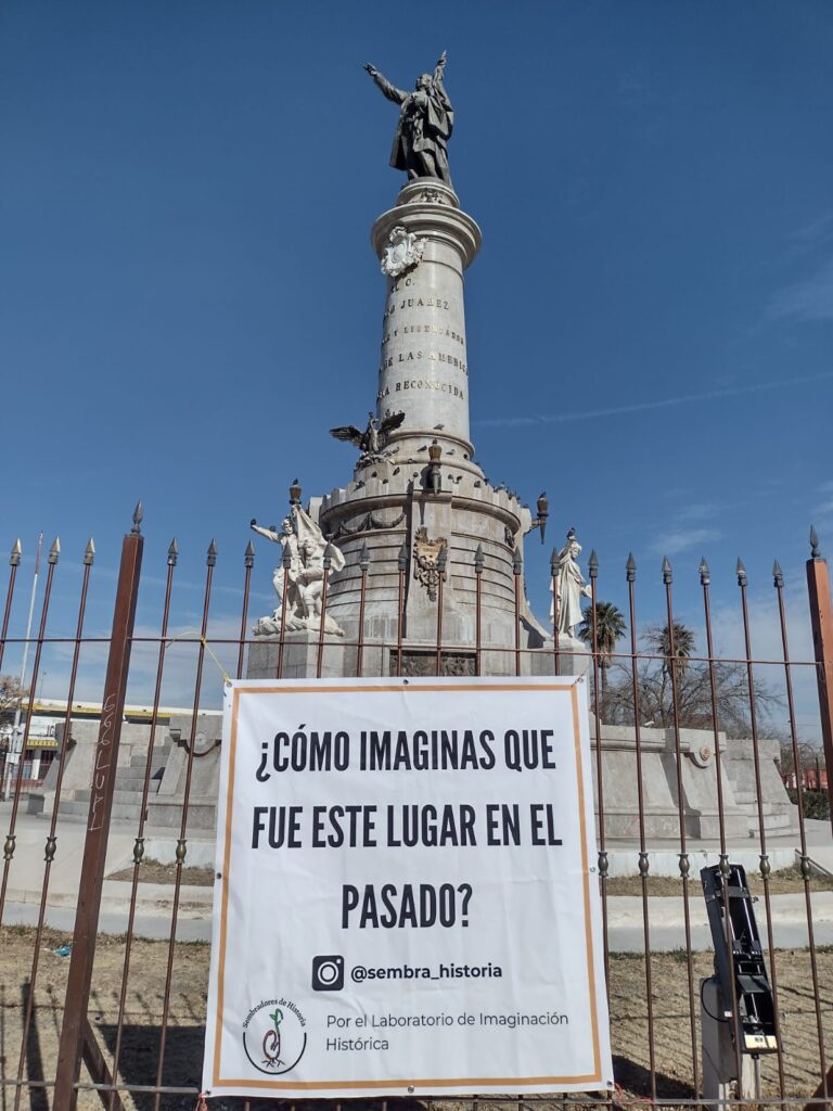 Uno de los ejercicios más emblemáticos ocurrió frente al Monumento a Benito Juárez, en el centro de la ciudad. Allí, entre predicadores, activistas y transeúntes, el colectivo montó una pequeña exposición con fotografías antiguas del mismo sitio, tomadas a principios del siglo XX.